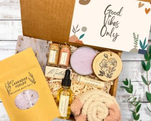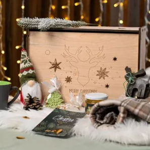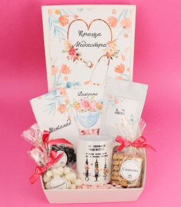 Турбота про здоров’я і баланс: пляшка для води, набір трав’яних чаїв, плед, аромасвічка, антистрес-іграшка.